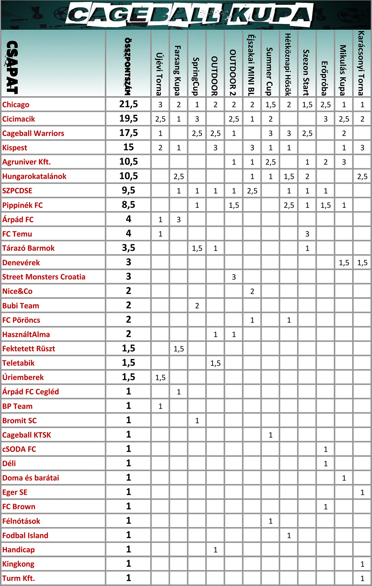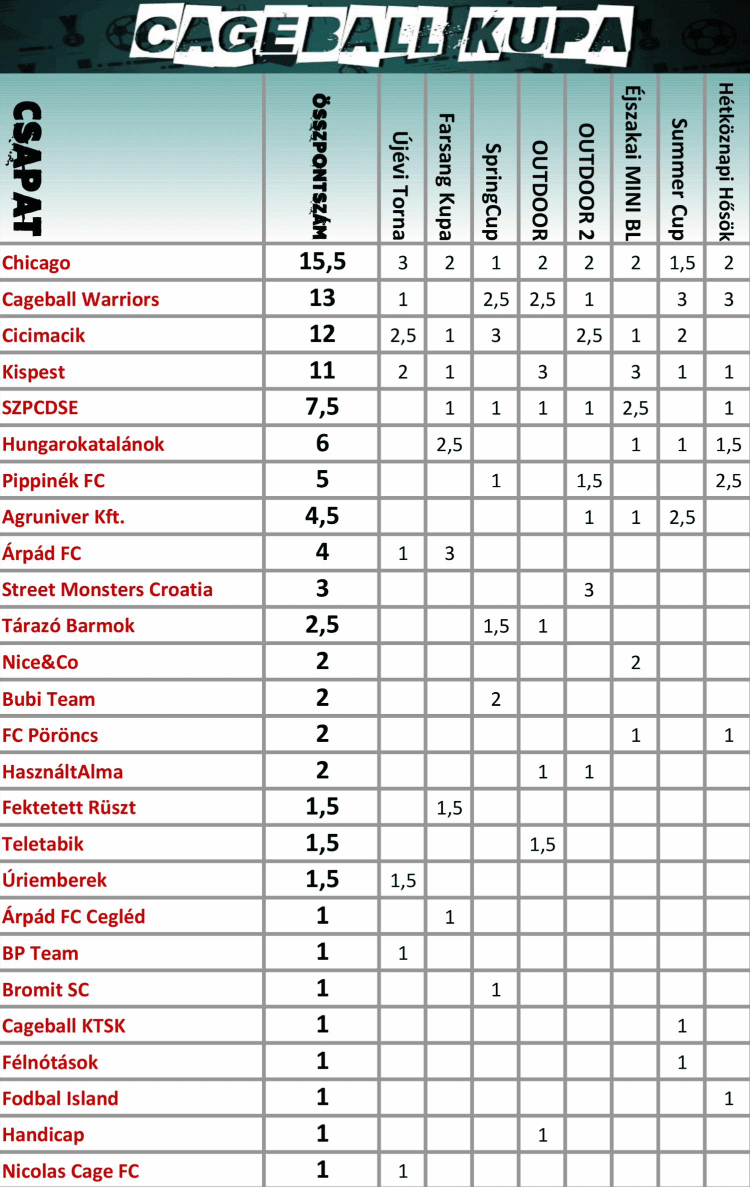 A 3v3 CAGEBALL és 1v1 PANNA KUPÁK VÁNDORSERLEGEIT minden év végén egy csapat / versenyző végleg elnyerheti!