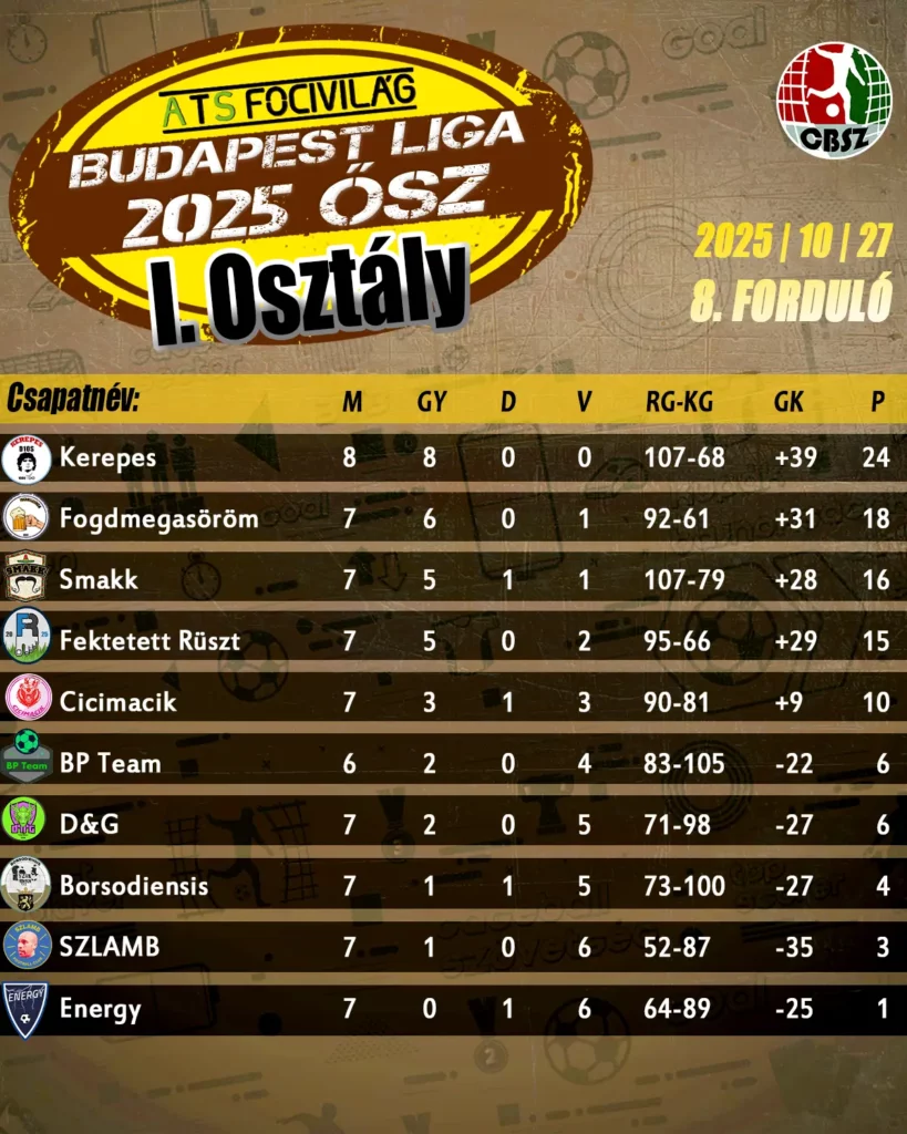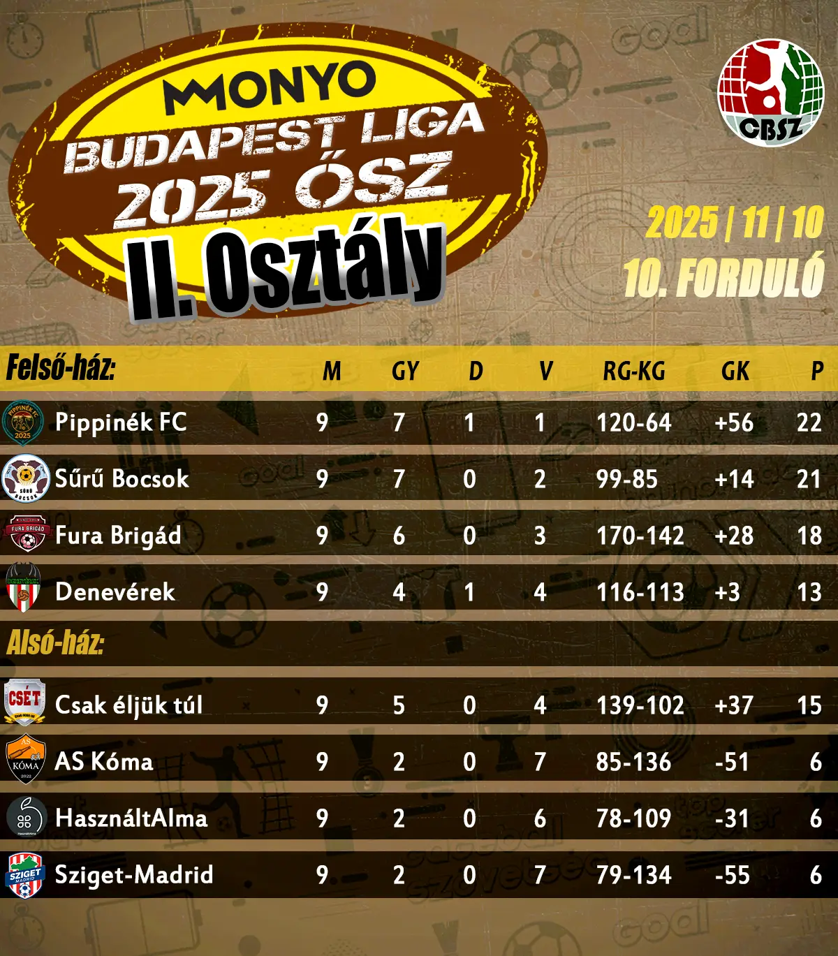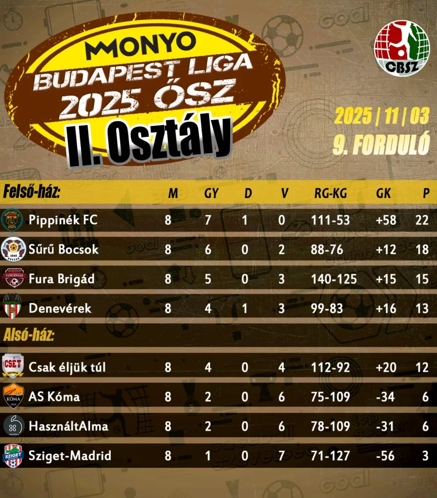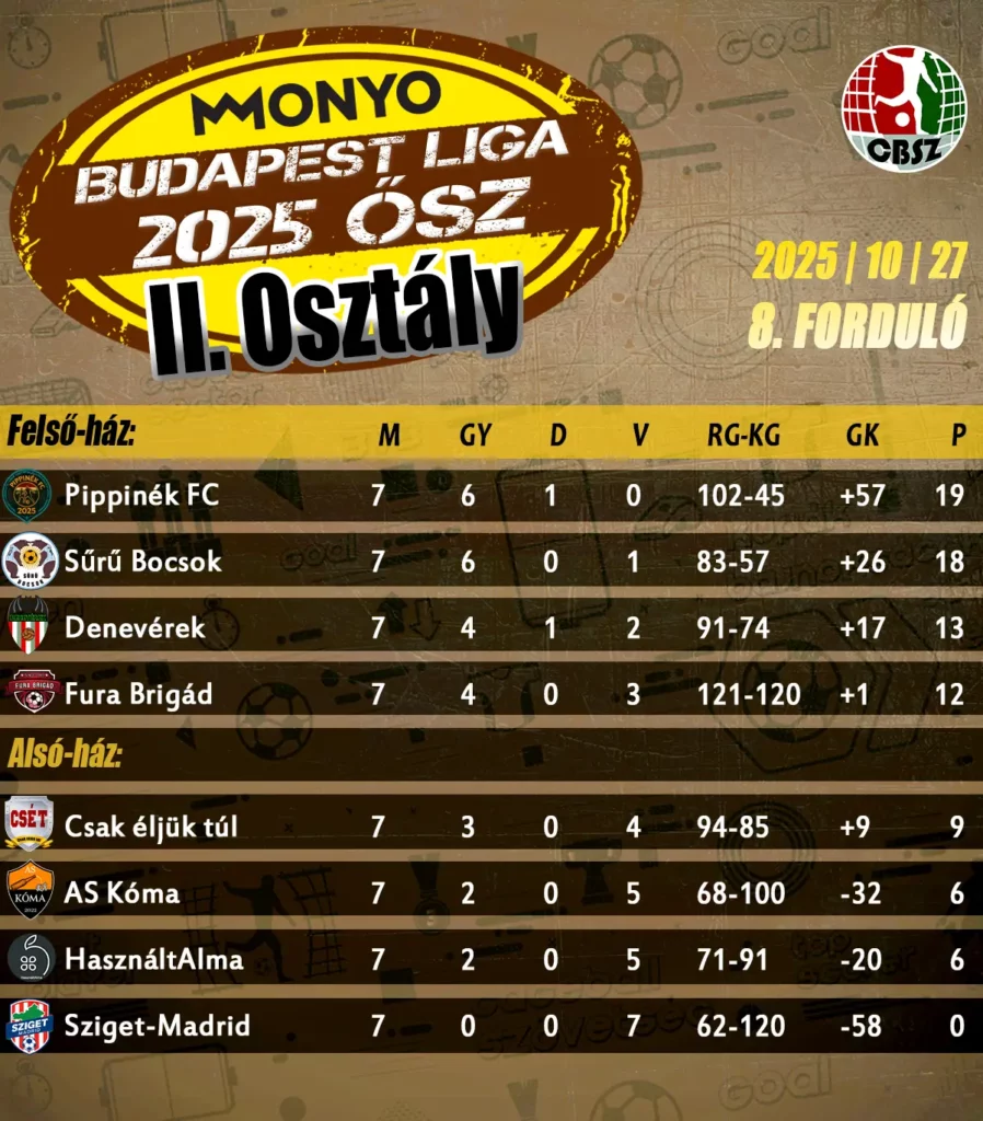 BUDAPEST LIGA 2025 ŐSZ – hétfő